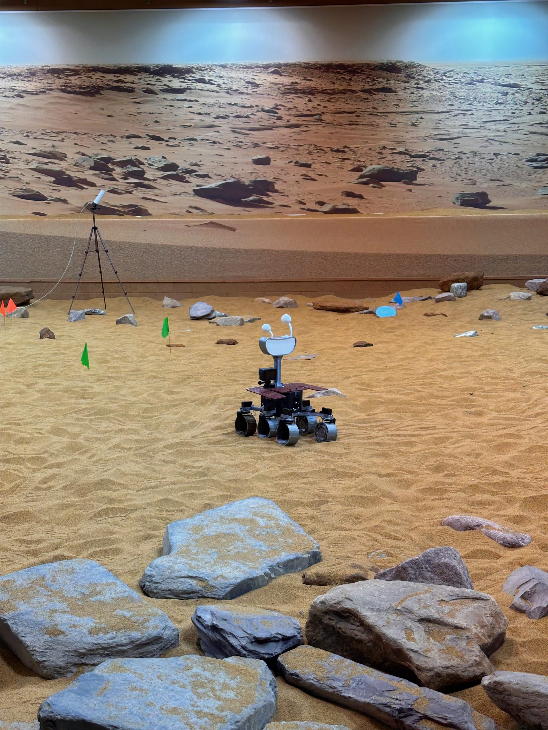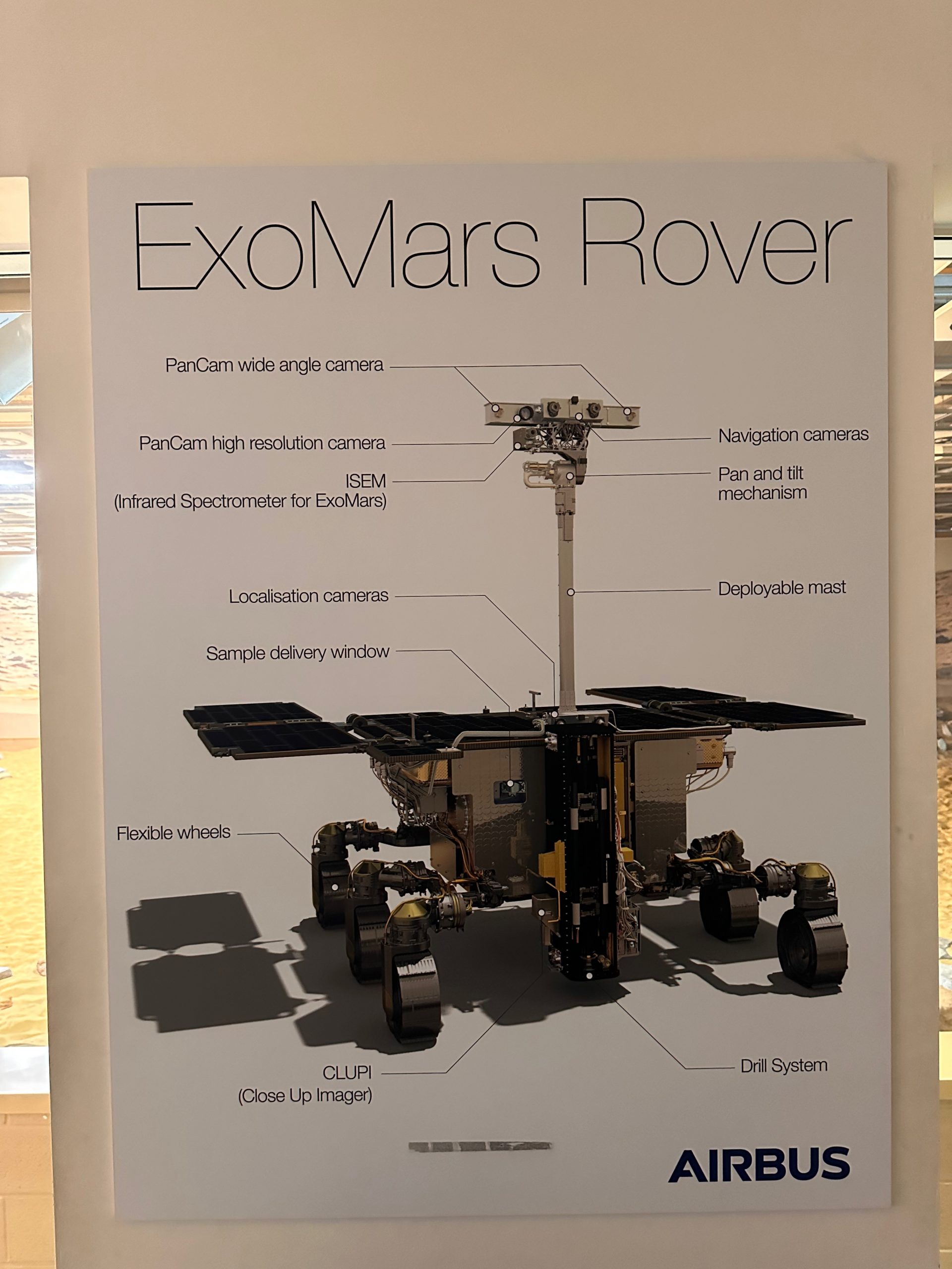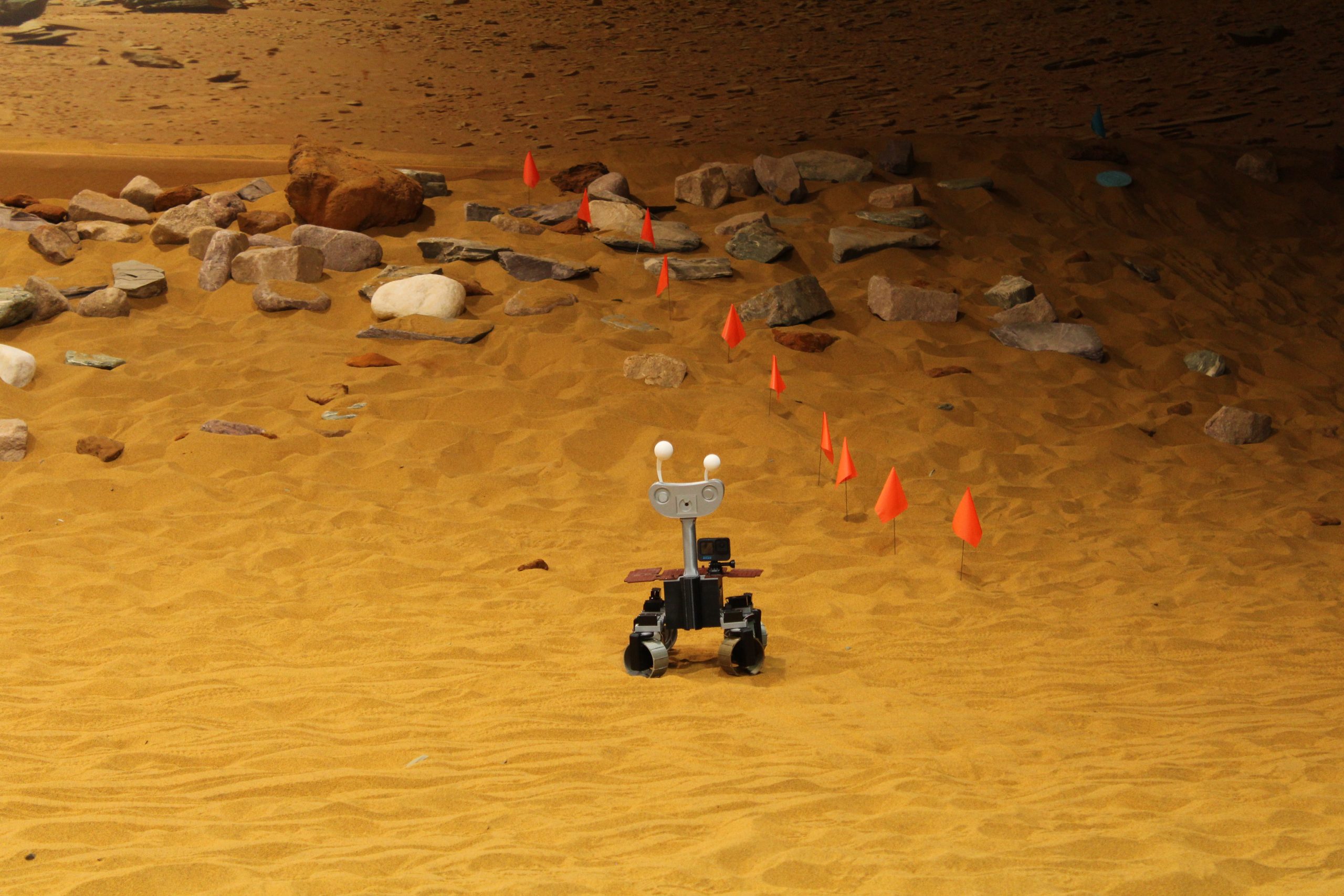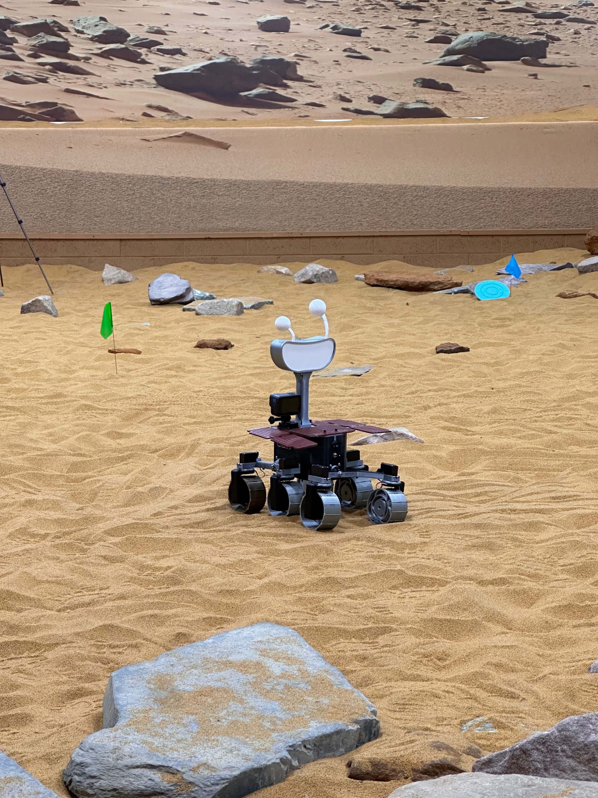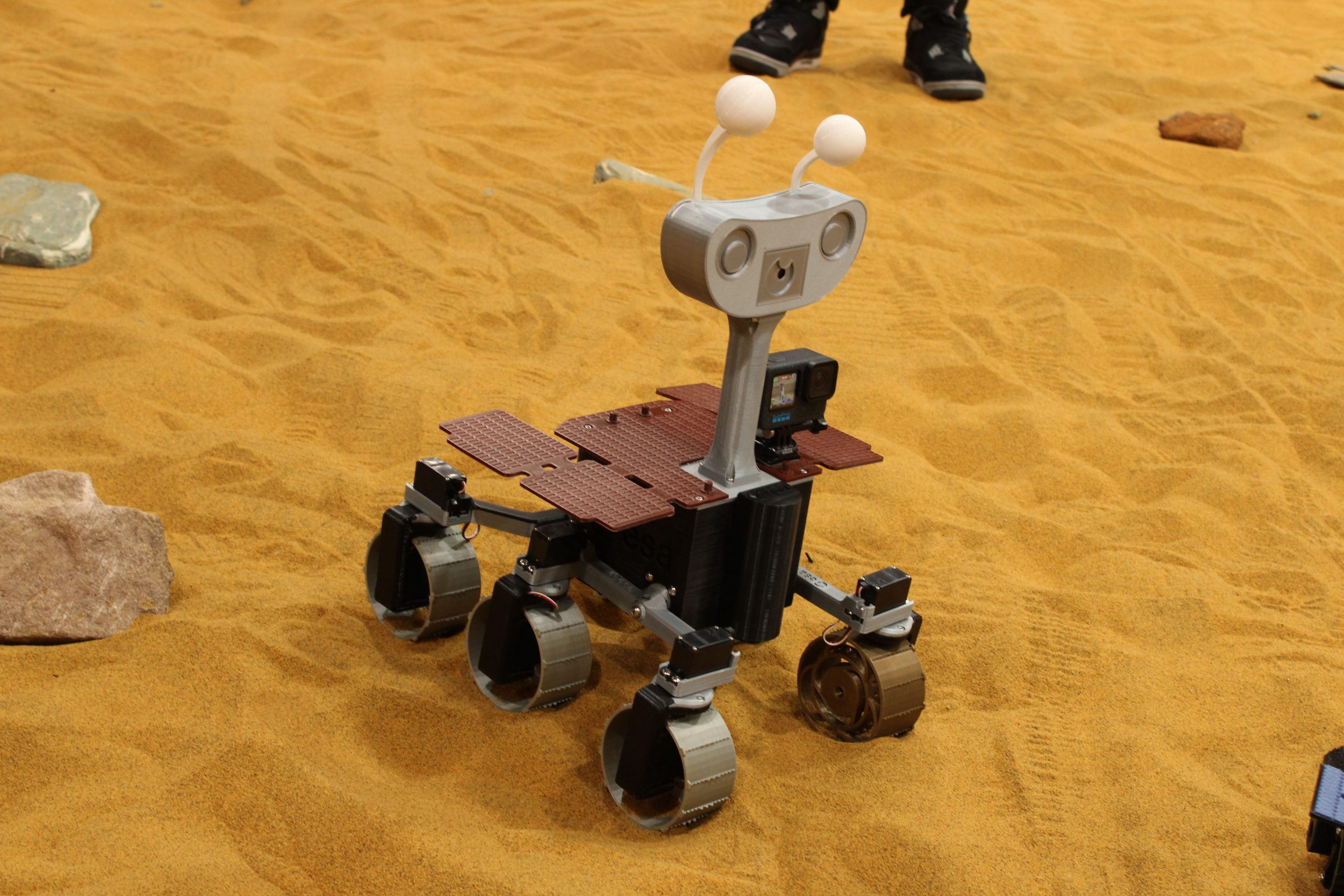 Marvin, development name Hugs, is an ExoMy rover. He is a fully 3D-printed rover inspired by ExoMars. ExoMy's hardware and software is fully open source and extensive building and assembly instructions are available for the rover. Both were originally provided by the European Space Agency, though this has been archived, and is now maintained by 0xD0M1M0 on GitHub.